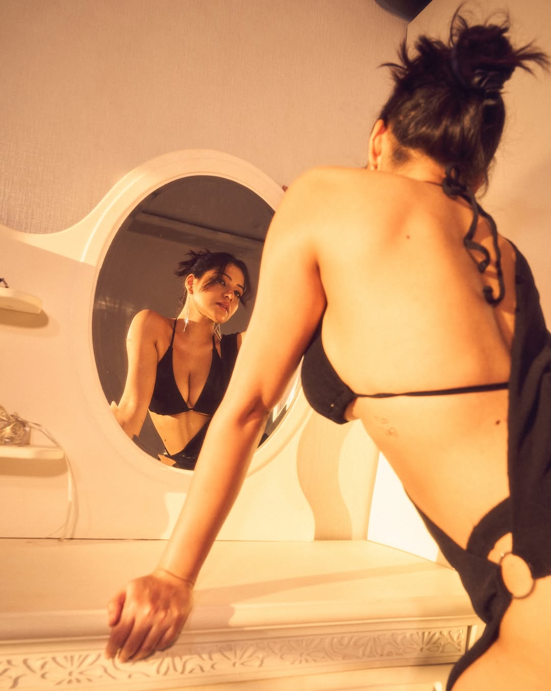 Simran Kaur exudes an undeniable aura of confidence and allure in this breathtaking outfit. Drenched in the golden hues of warm sunlight, she embodies sophistication with a hint of daring sensuality, making a striking impression.