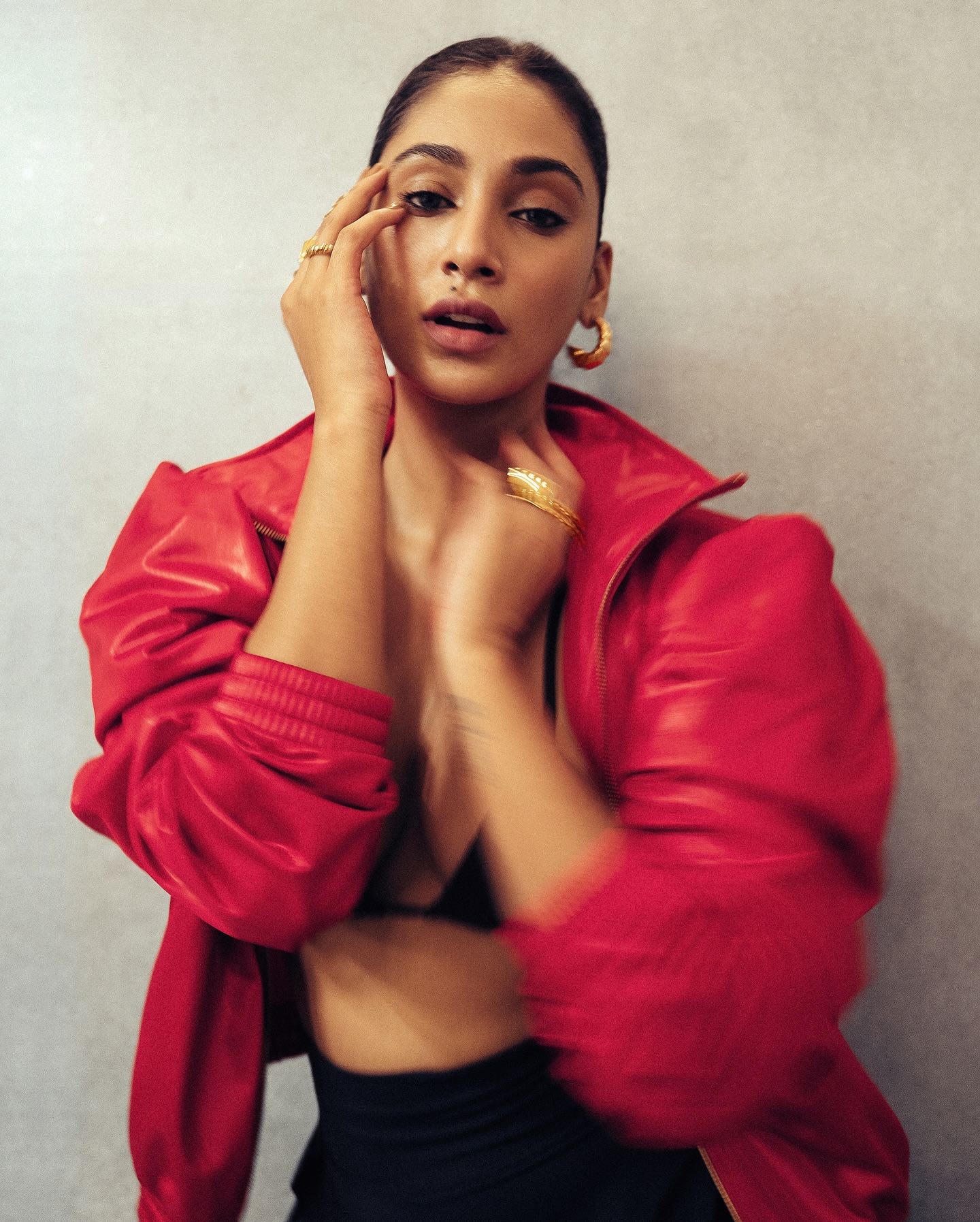 Anukreethy Vas isn’t just flaunting fashion here — she’s flaunting pure desire. With her killer curves, plunging bra, and fiery attitude, she sets the screen (and hearts) ablaze. This is next-level hotness — and fans are already hooked!