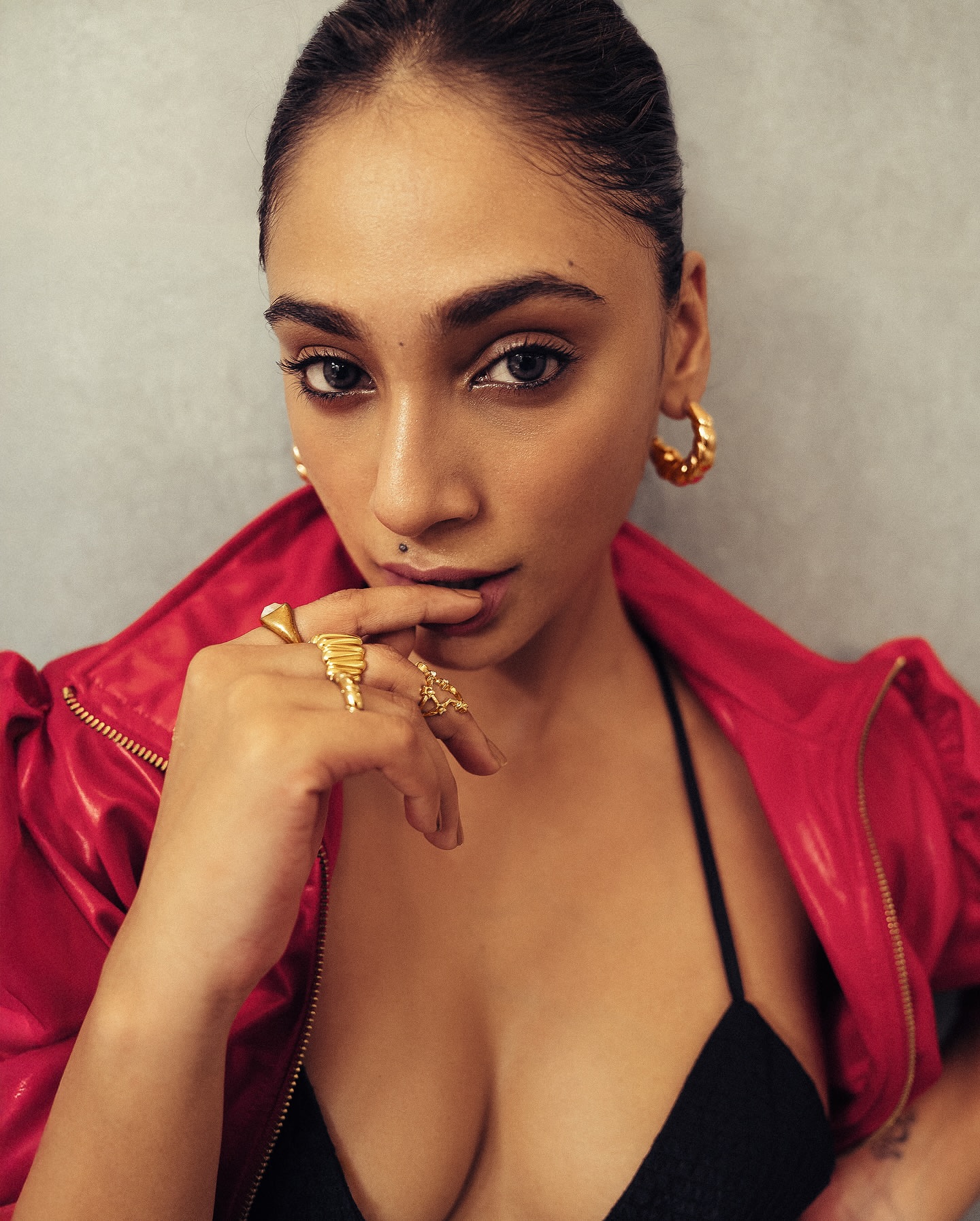 Sizzling Hot! Anukreethy Vas Slays in Plunging Black Bra with Fiery Jacket Glam